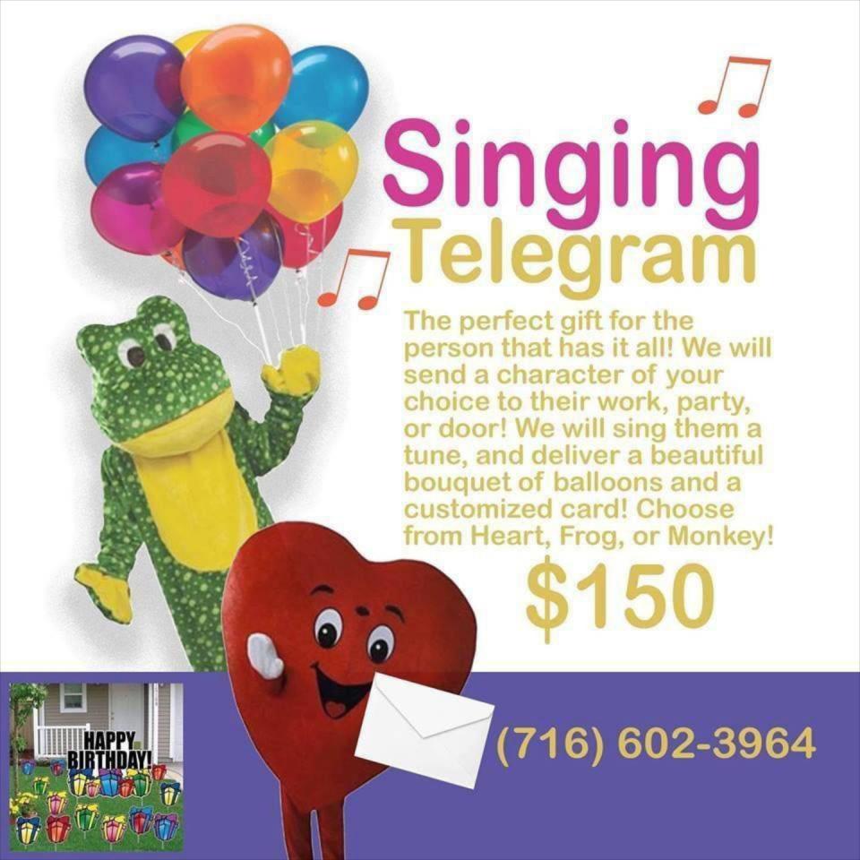 . Book Labor Day Halloween OR BIRTHDAY SINGING Telegrams. Telegrams singing memphis services entertainment parties costume birthday elvis gorilla prank joke embarrass office character gallery Lakeland. Choose a city below to.